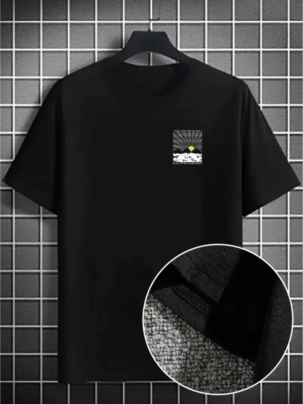 Dağ Grafikli Tişört, Yaz için Büyük Beden Rahat T-shirt - Siyah -