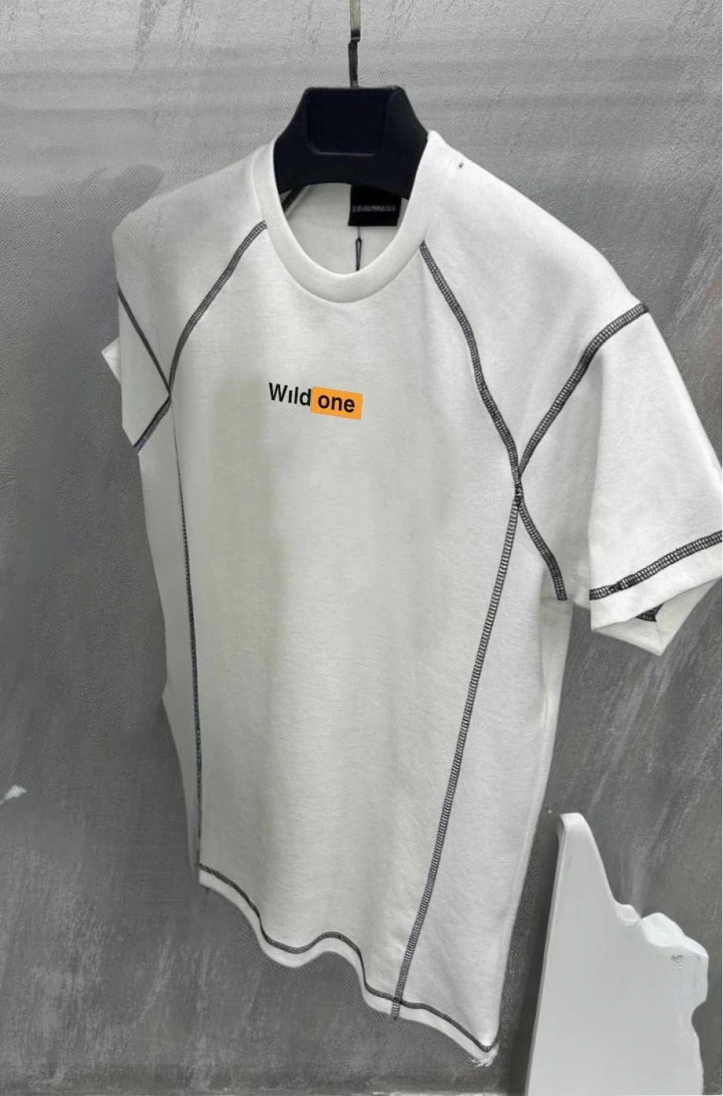 Dikişli Baskılı Oversize T-Shirt - Beyaz -