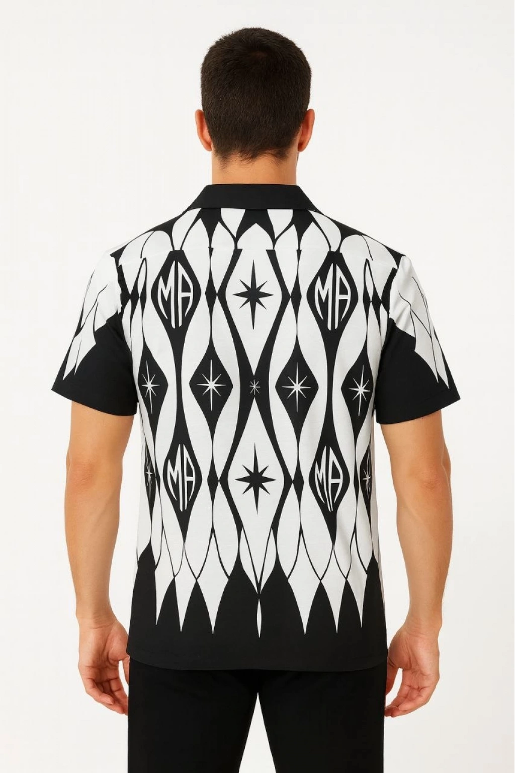 İki İplik Kumaş Dijital Baskılı Gömlek - Siyah -