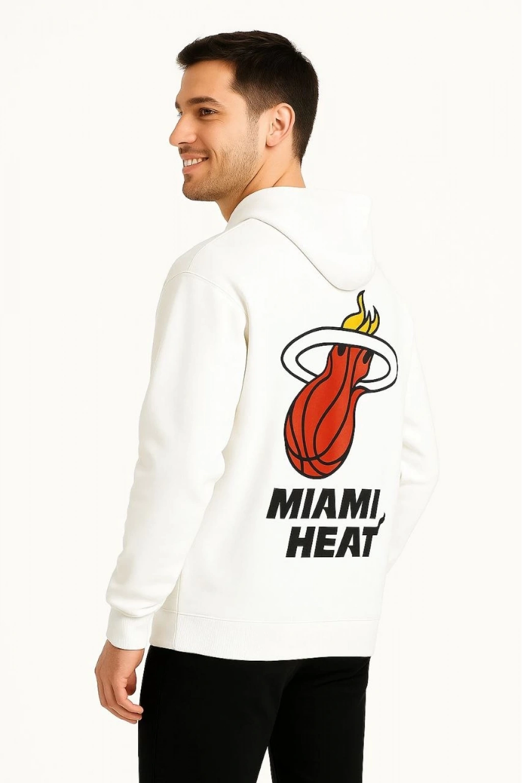 Kapşonlu Sweatshirt Ön Arka Baskılı - Beyaz -