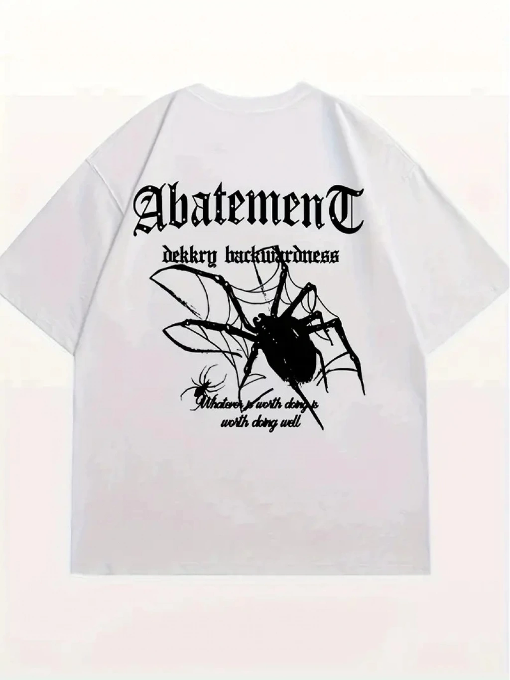 Örümcek Ağı Desenli Baskılı Oversize Bisiklet Yaka T-shirt - Beyaz -