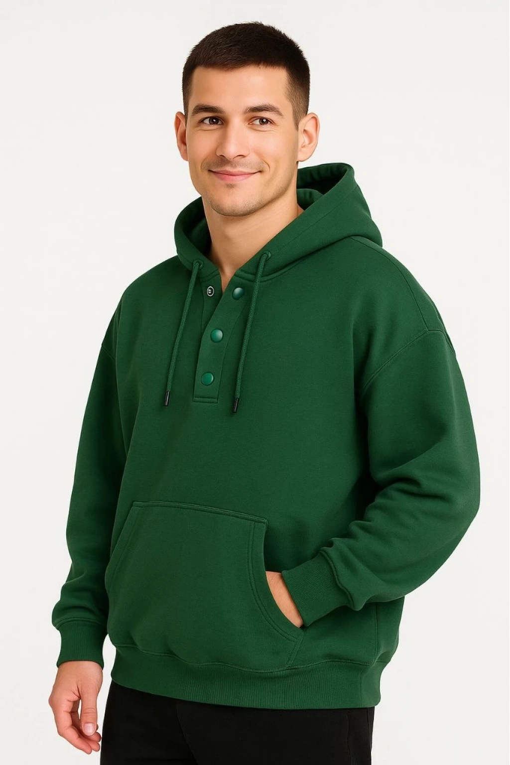 Ovarsize Kapüşonlu sweatshirt Kanguru Çepli Cıtcıtlı 3 iplik Şardonlu Hoodie - Haki -