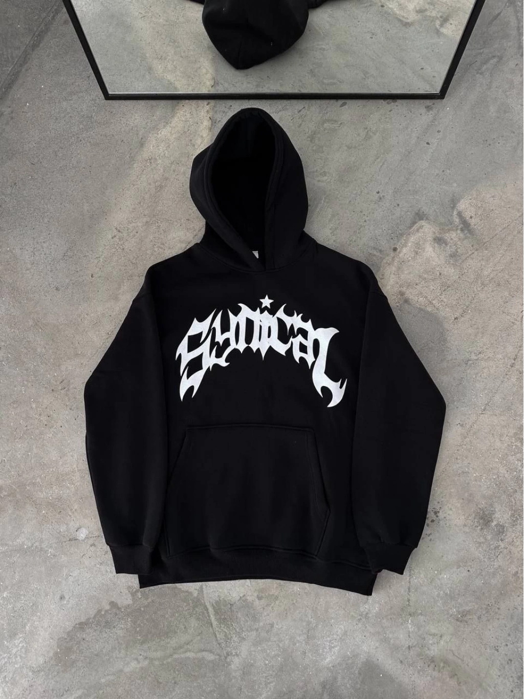 Üç İplik Kapüşonlu Baskılı Oversize SweatShirt- Siyah -