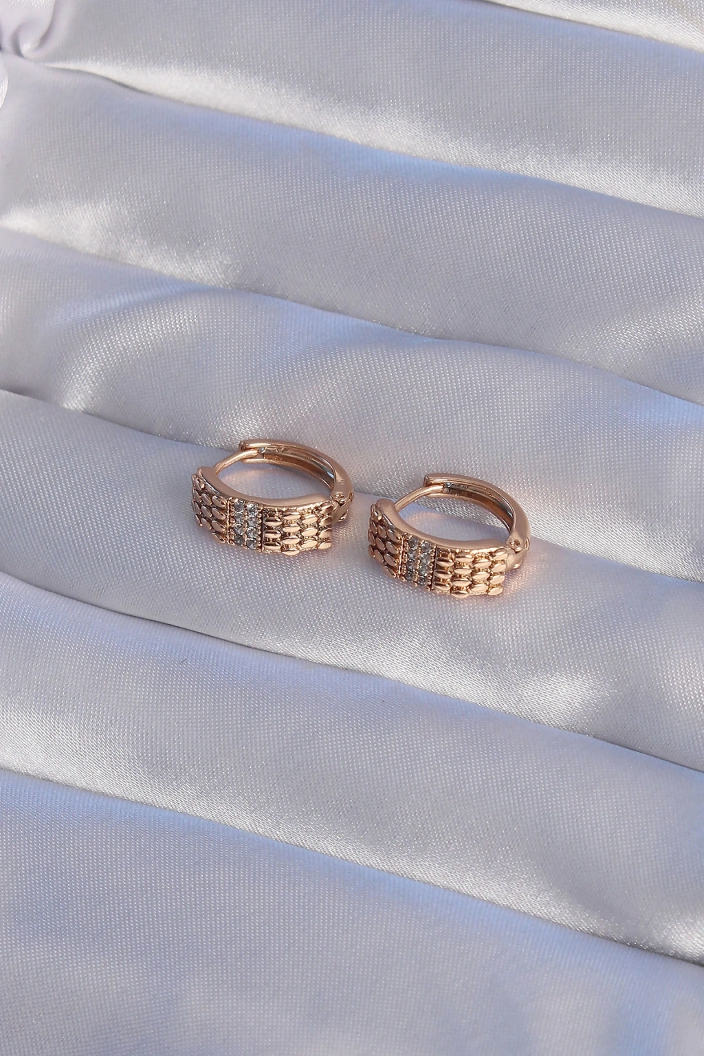 XUPİNG Rose Renk Zirkon Taşlı İşlemeli Halka Küpe