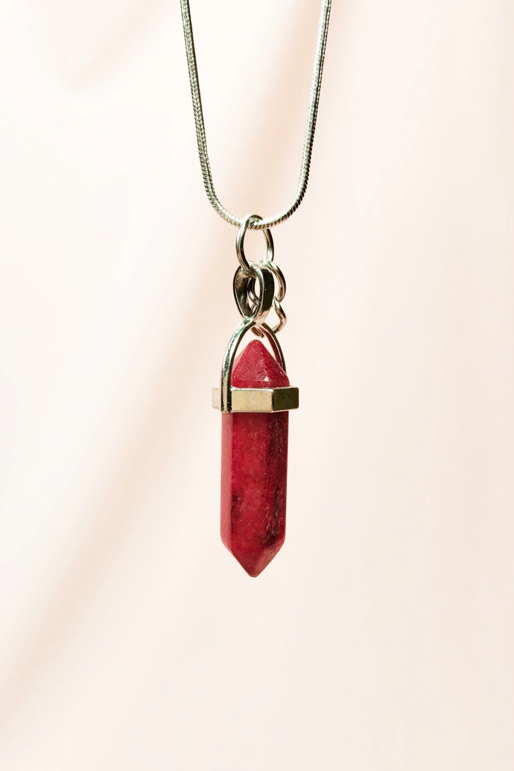 Yakut Doğal Taşı Zincirli El Yapımı Tasarımlı Kolye Uç: 3,5 cm Zincir: 20 cm Kutulu