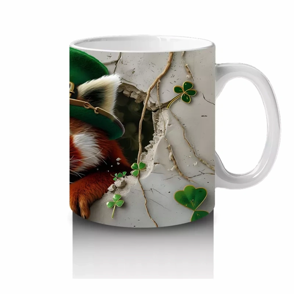 Yonca Yapraklarıyla Süslenmiş Tilki – Baskılı Kahve Kupası
