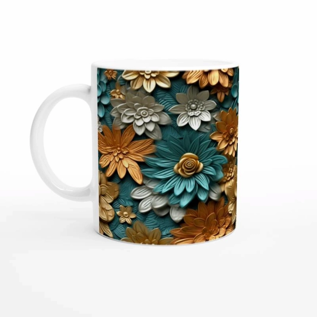 Katmanlı ve kabartmalı çiçek motifleriyle süslenen bu özel kupa bardak, her yudumda zarafet hissi uyandırır.